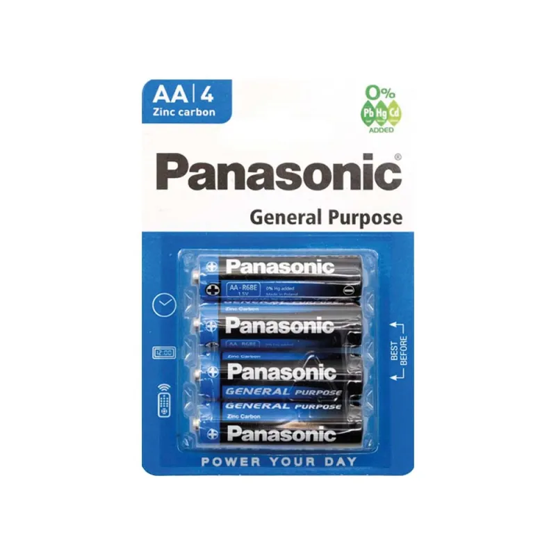 PANASONIC ZINC CARBON BATTERIES AA 4 PACK x12