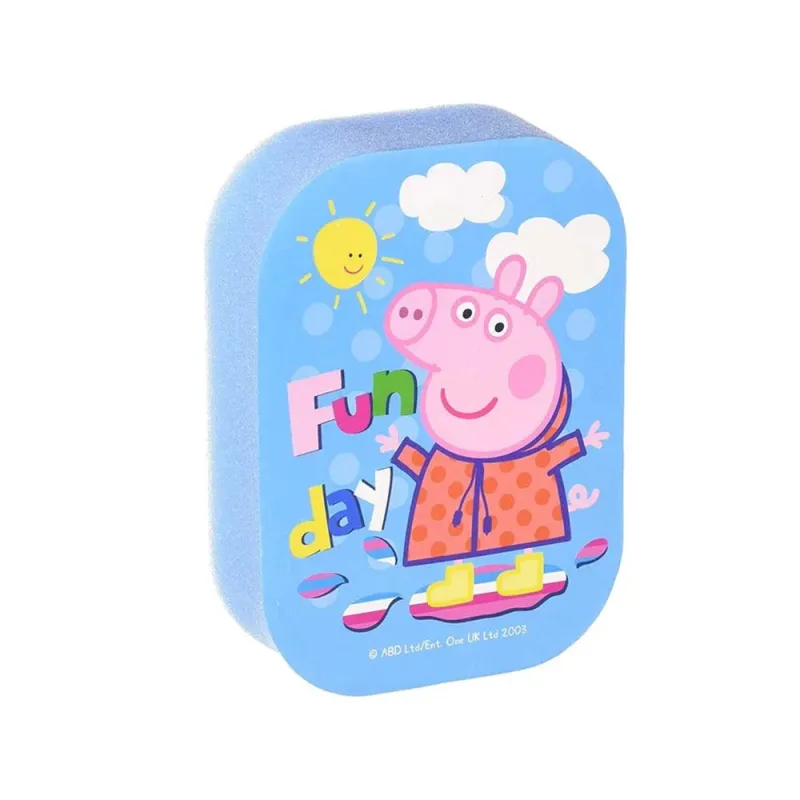 Soft Peppa Pig themed bath sponges for gentle washing.