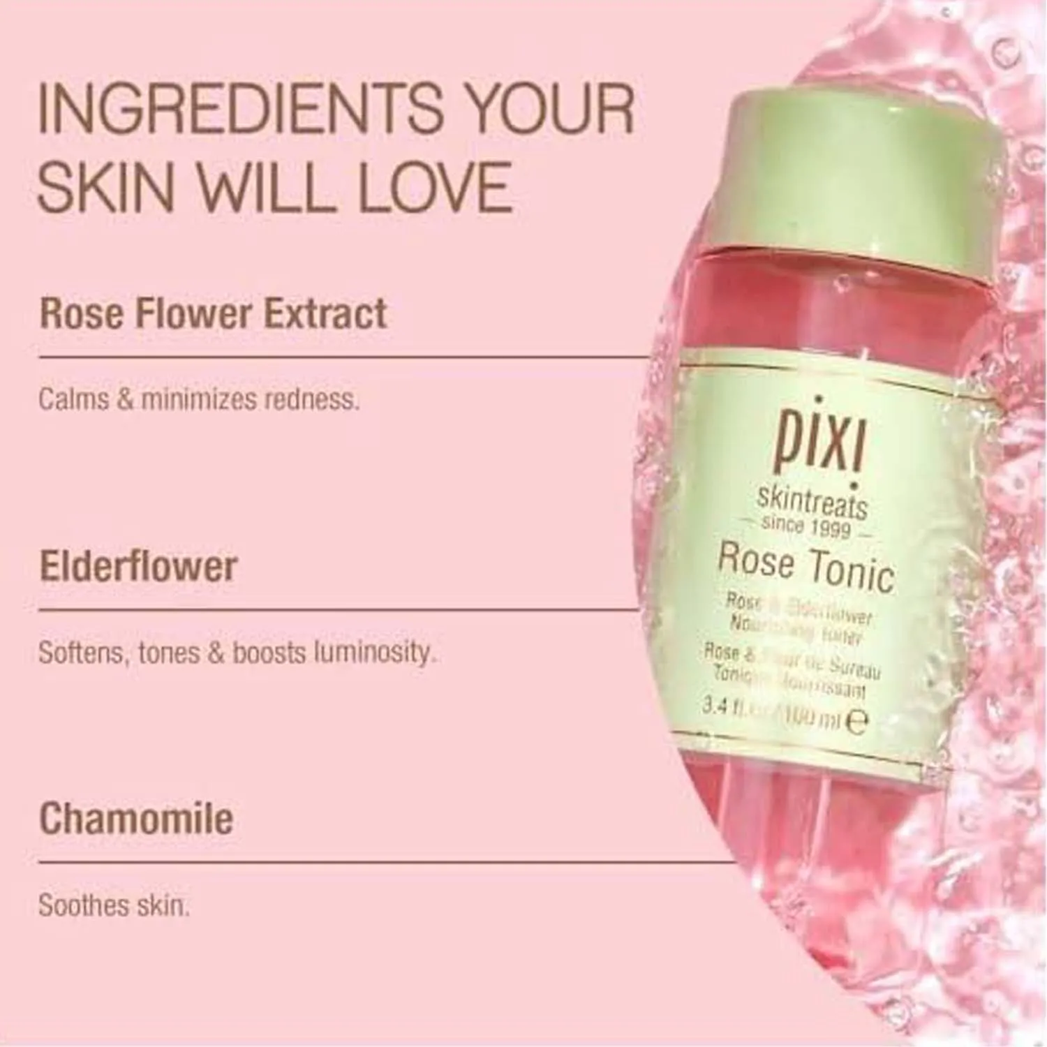 Pixi Rose Tonic 100ml is a soothing facial toner designed to hydrate and calm the skin. Infused with rose and nourishing ingredients, it helps maintain moisture balance while leaving skin feeling soft, refreshed, and comforted. Ideal for daily use.