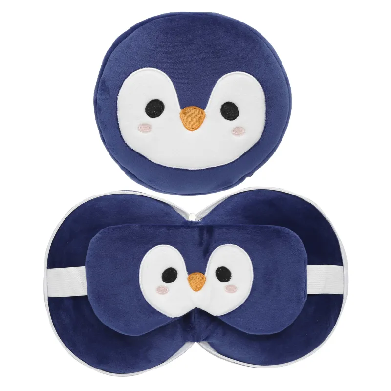 RESTEAZzz HEAD PILLOW WITH EYE MASK BLUE PENGUIN
