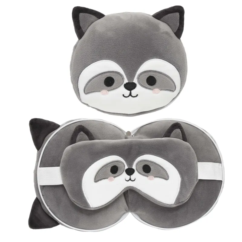 RESTEAZzz HEAD PILLOW WITH EYE MASK GREY RACOON