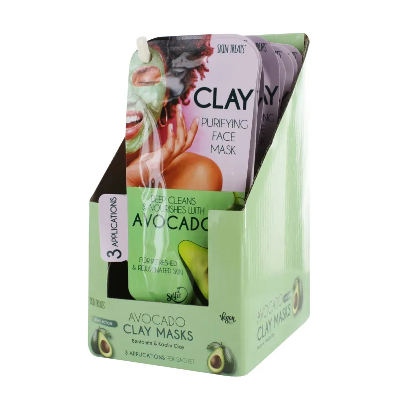 Nourishing clay mask with avocado extract to detoxify, hydrate, and revitalize the skin, suitable for multiple uses.