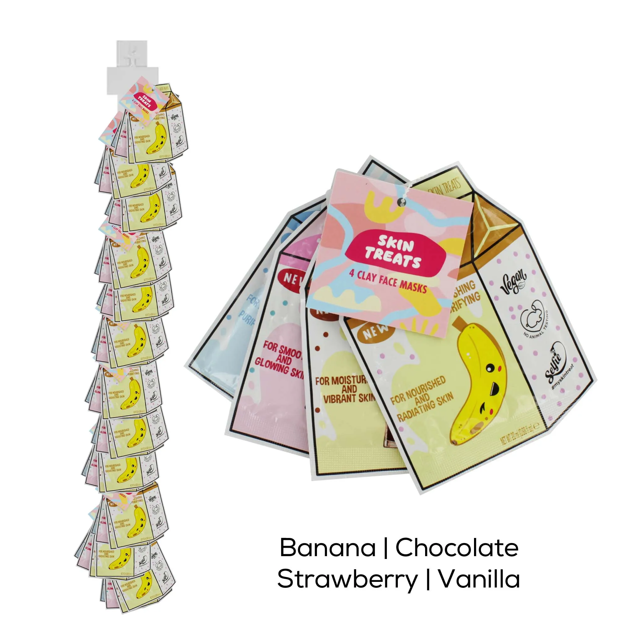 A fun and colourful hanging gift set featuring four clay face masks inspired by milkshake themes. Designed to help cleanse, refresh, and revitalise the skin, making it perfect for pamper nights or gifting.
