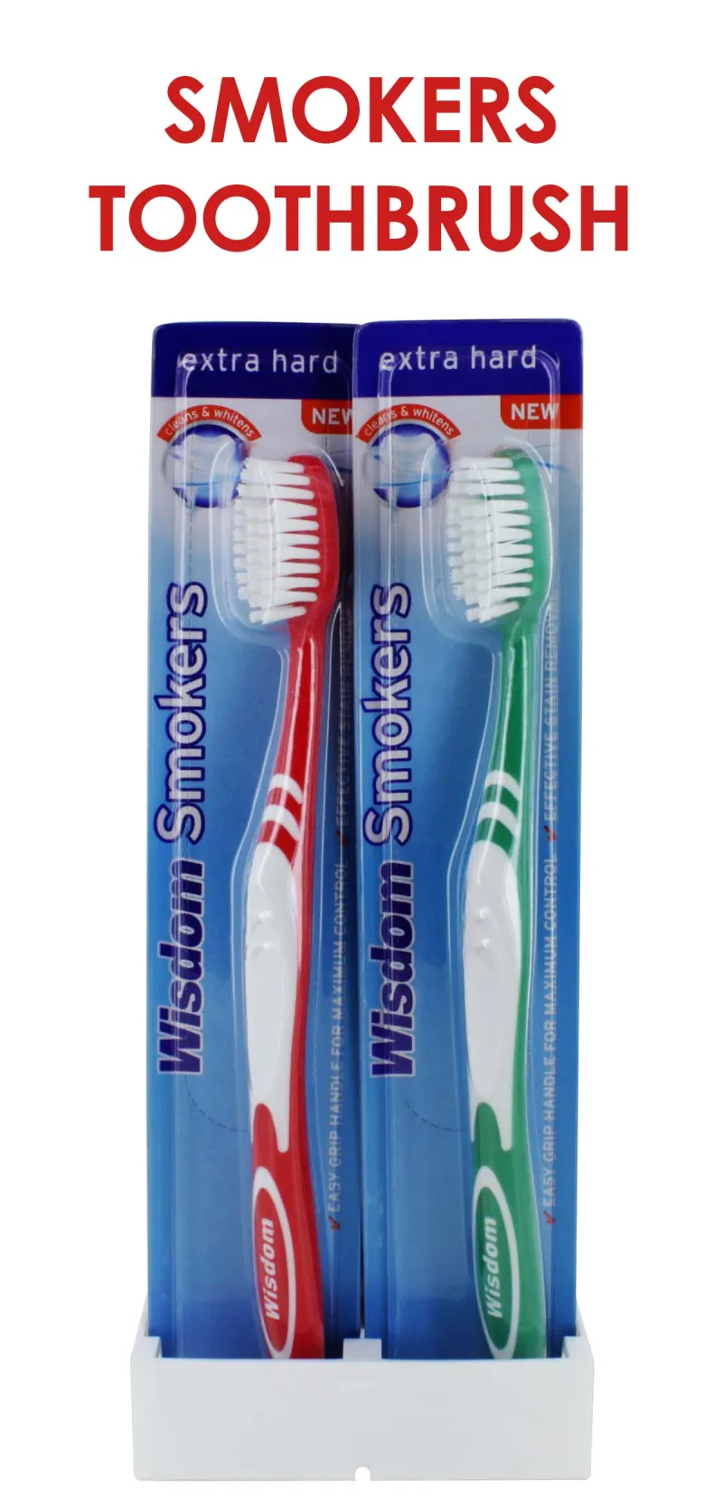 Specially designed for smokers, the Wisdom Smokers Toothbrush helps remove surface stains and maintain oral hygiene. Features soft bristles for gentle cleaning and a deep-cleaning design for healthier teeth and gums.