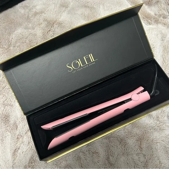 A professional titanium flat iron in an elegant rose gold finish, offering fast, even heat for sleek, frizz-free styling and long-lasting shine.