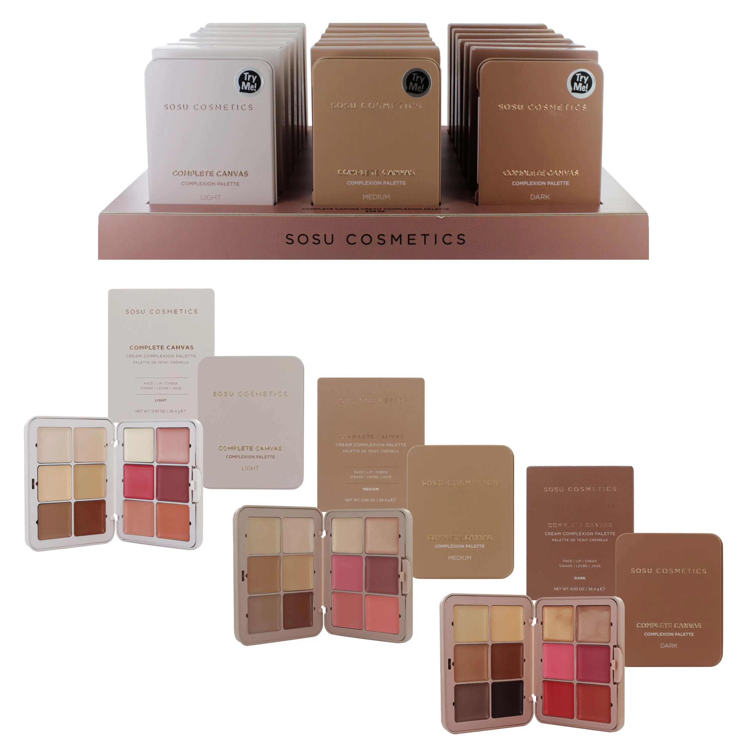 All in one complexion palettes featuring bronzer, blush and highlighter in a counter display