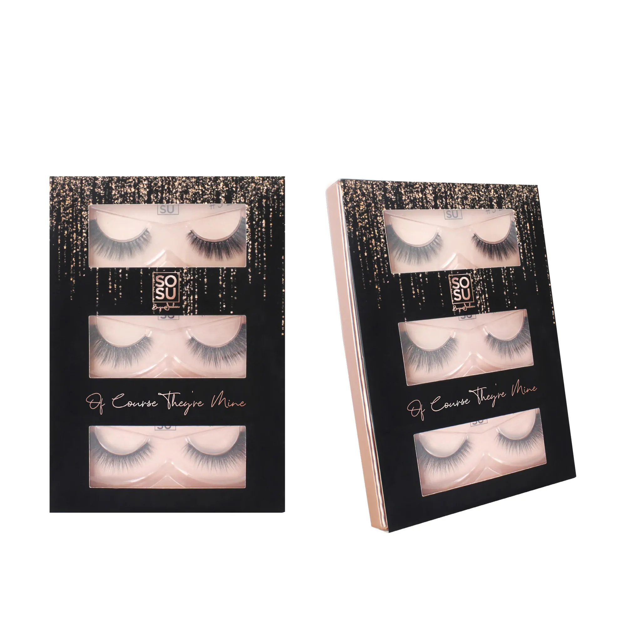 Turn heads with the SOSU Lash Drawer “Of Course They Are Mine” 3 Lash Set — a stunning trio of premium, reusable false lashes. Designed to add volume, length, and definition, each pair offers a unique style to suit any occasion, from natural glam to full-on drama. Lightweight and comfortable to wear, these lashes come beautifully packaged in a chic drawer-style box for easy storage and reuse.