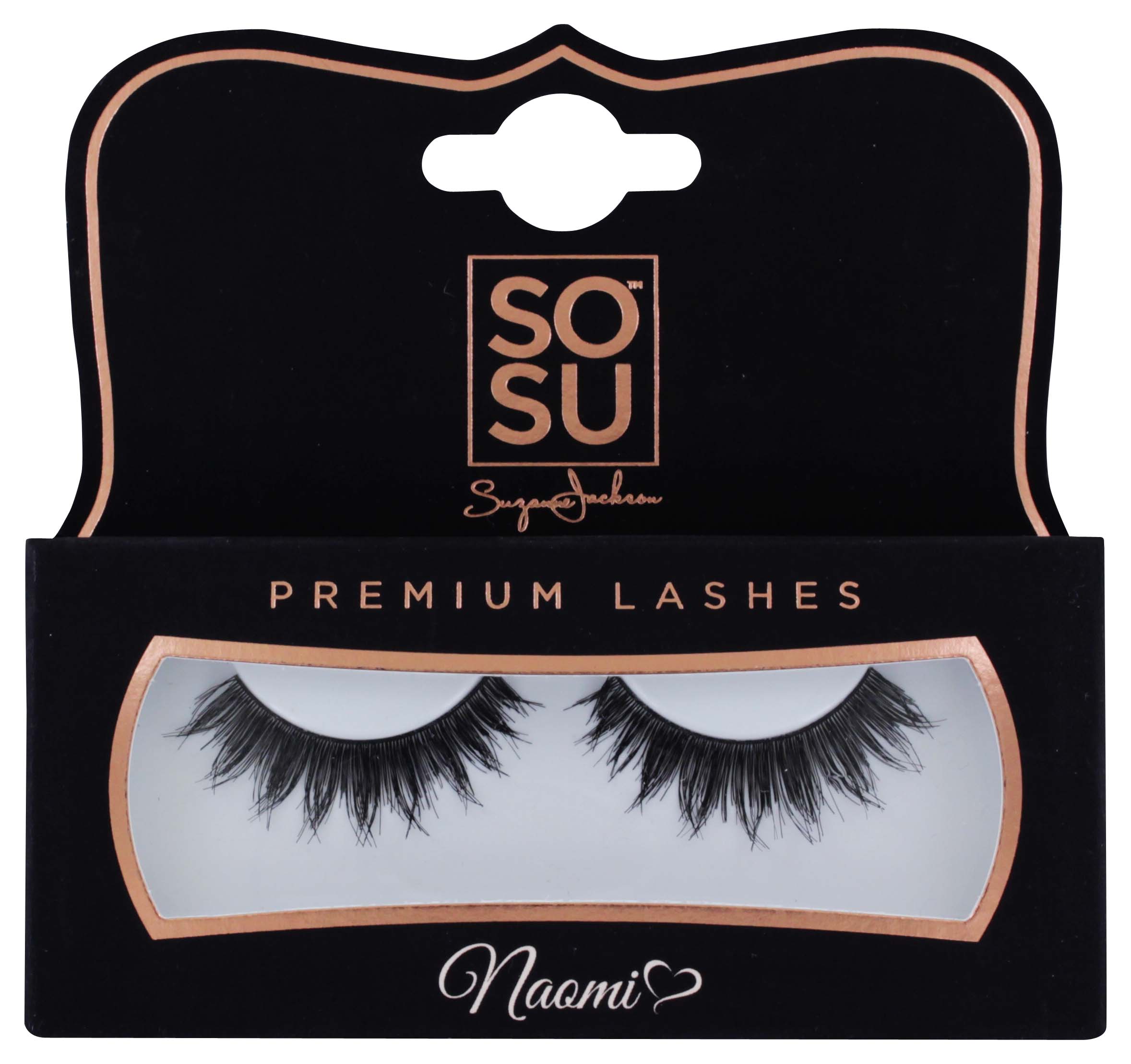 Black false lashes for bold, voluminous eye enhancement.