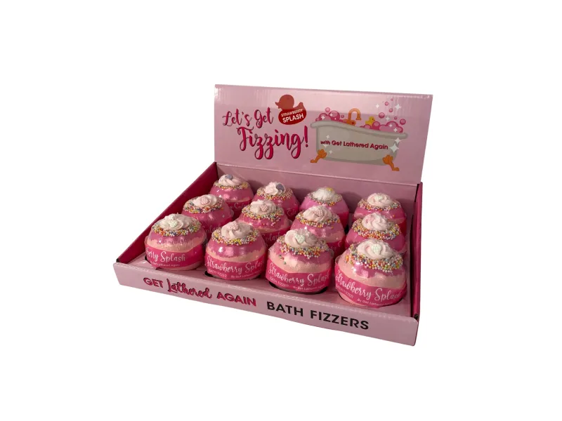Fizzy bath bomb with juicy strawberry fragrance.