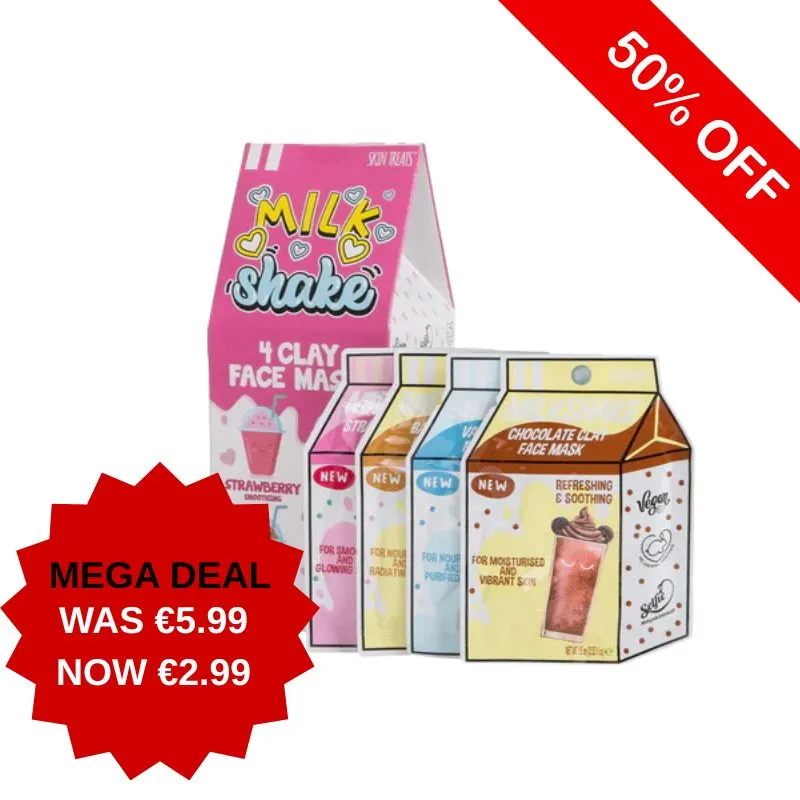Set of four clay masks with milkshake inspired formulas.