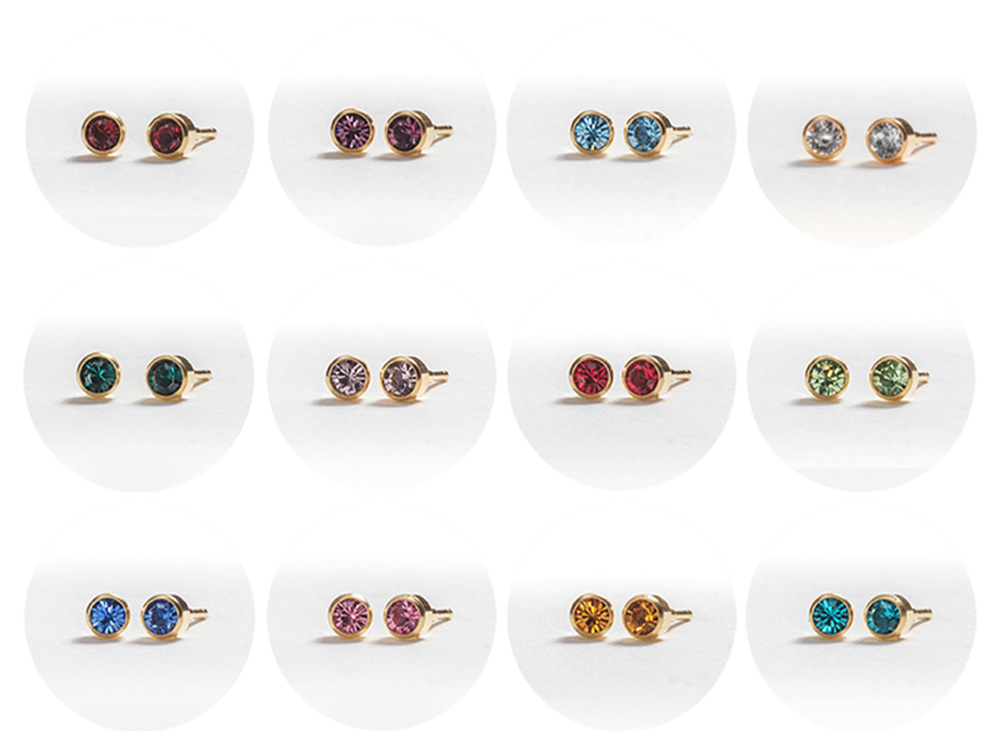 SYSTEM 2000 EAR STUDS GOLD BIRTHSTONES x12