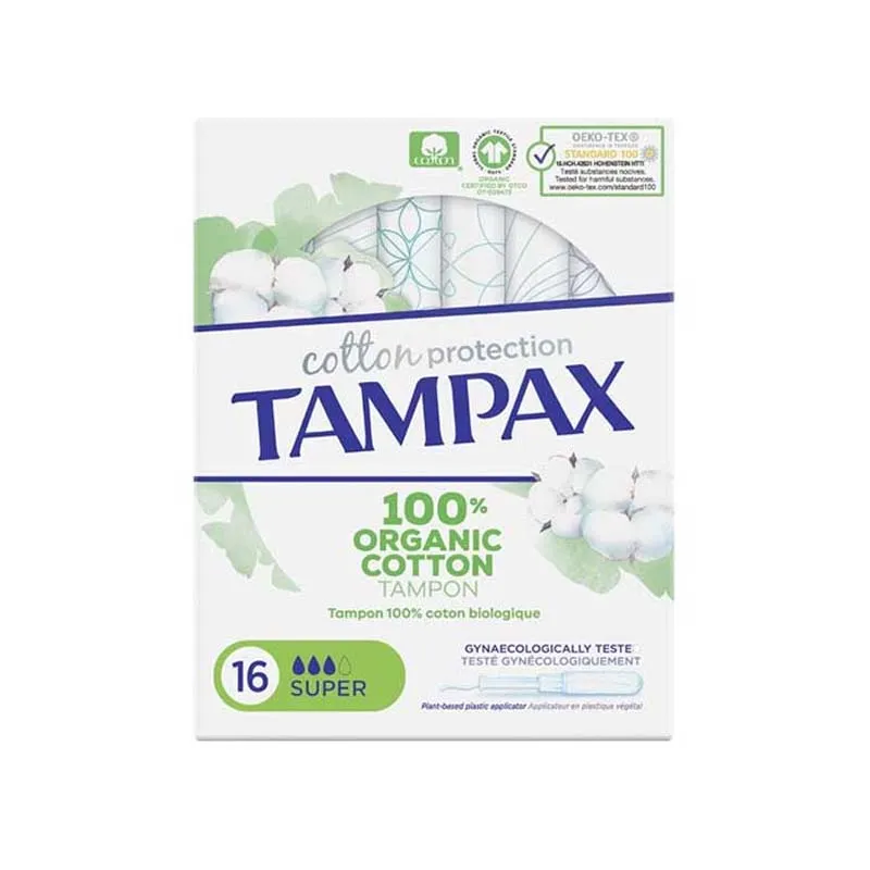 The Tampax Organic Cotton 16s Super tampons offer reliable protection made with 100% organic cotton. Free from fragrances, dyes, and chlorine bleaching, they provide a gentle, comfortable fit that’s kind to your body and the planet. Designed for medium to heavy flow, these tampons feature a smooth applicator for easy insertion and all-day confidence.