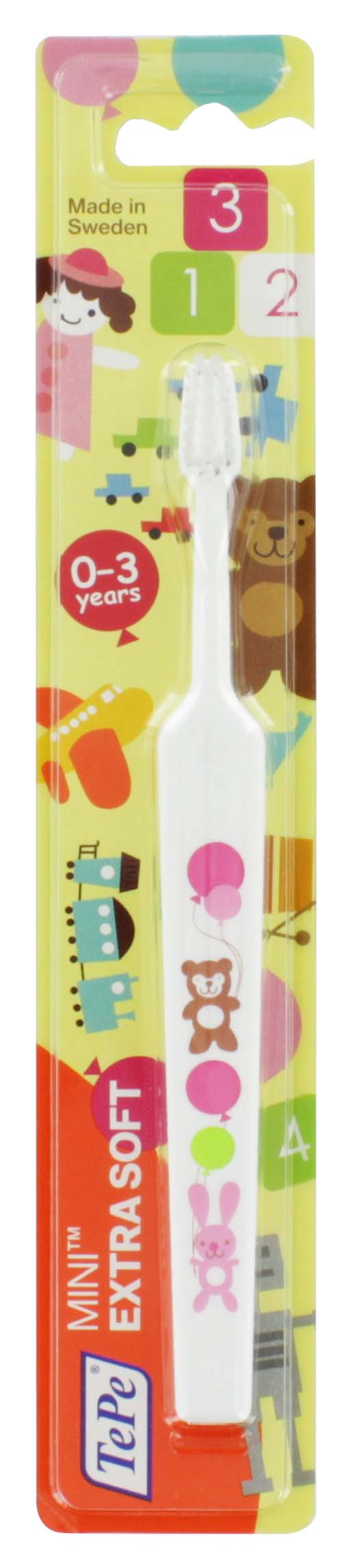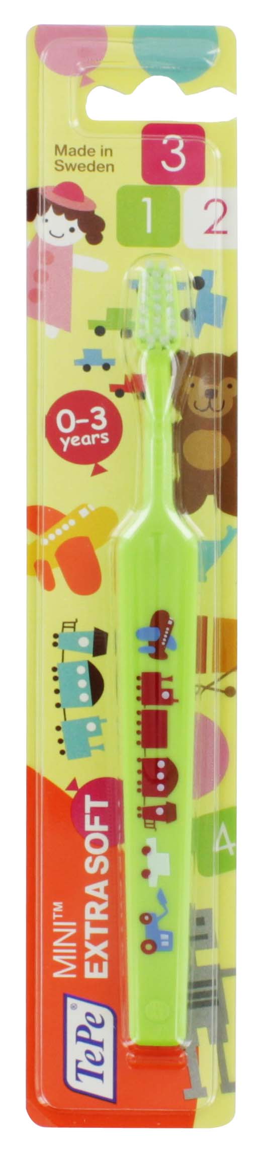 Extra soft toothbrush designed for gentle cleaning of toddlers' first teeth.