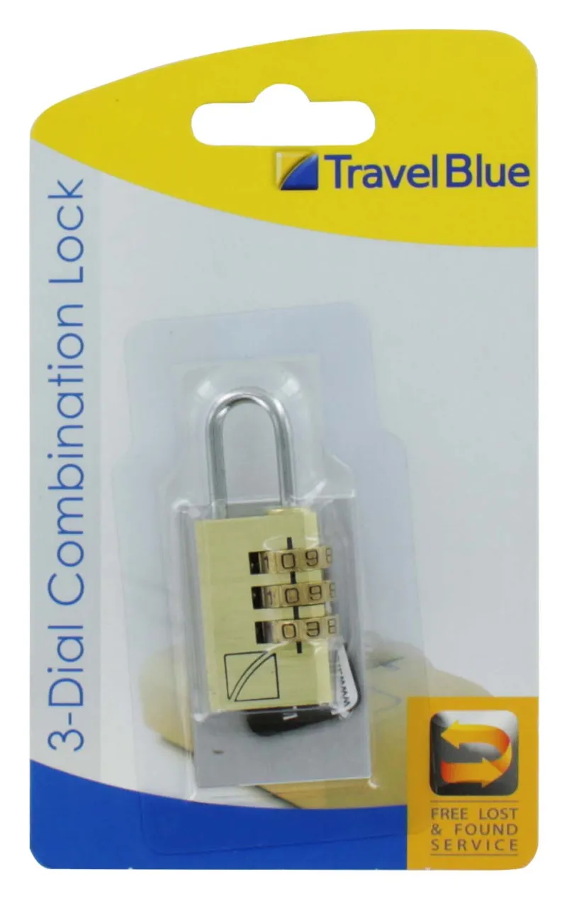 Sturdy 3-dial combination lock for securing luggage.