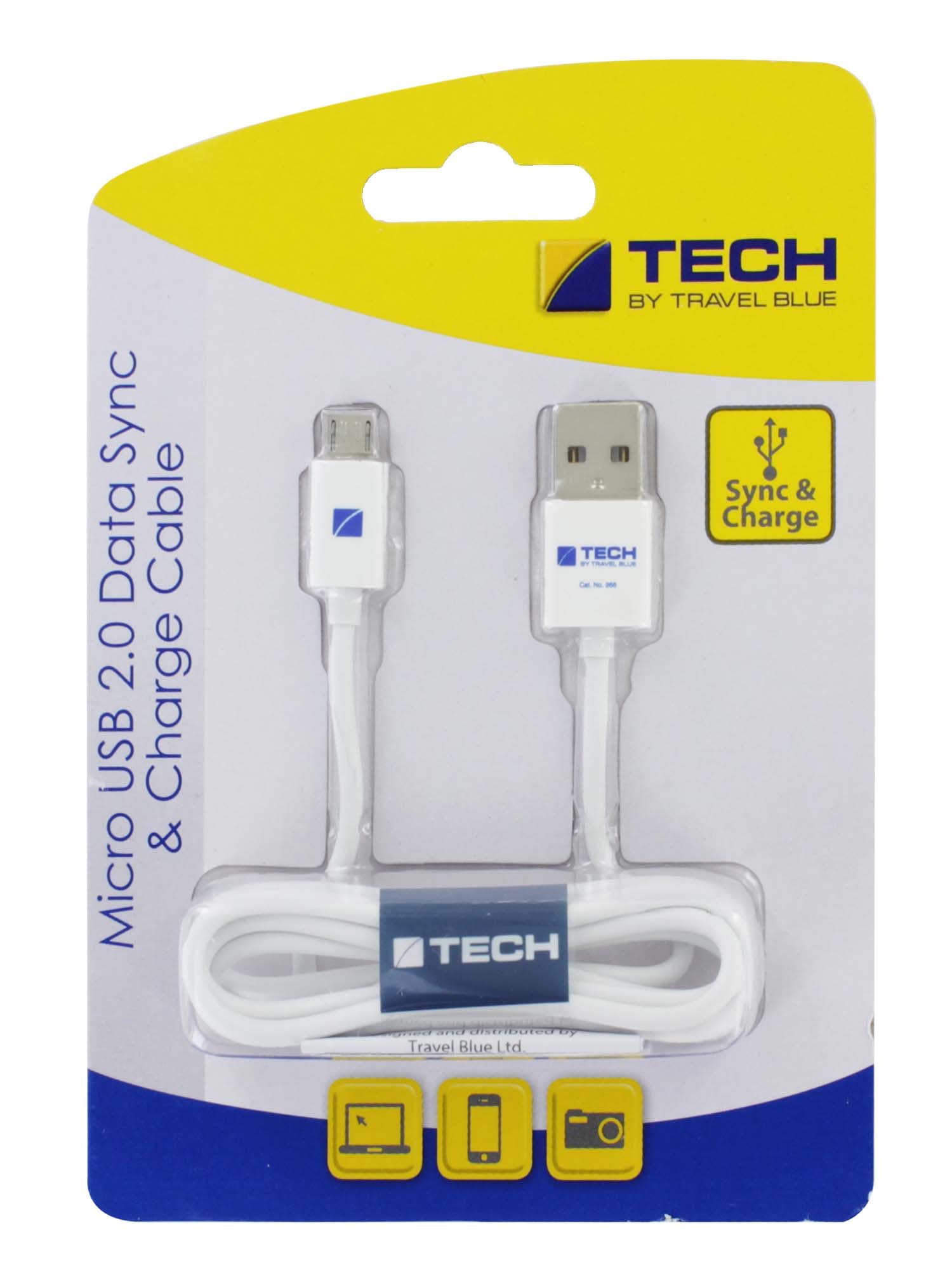 Micro USB cable for data syncing and device charging.