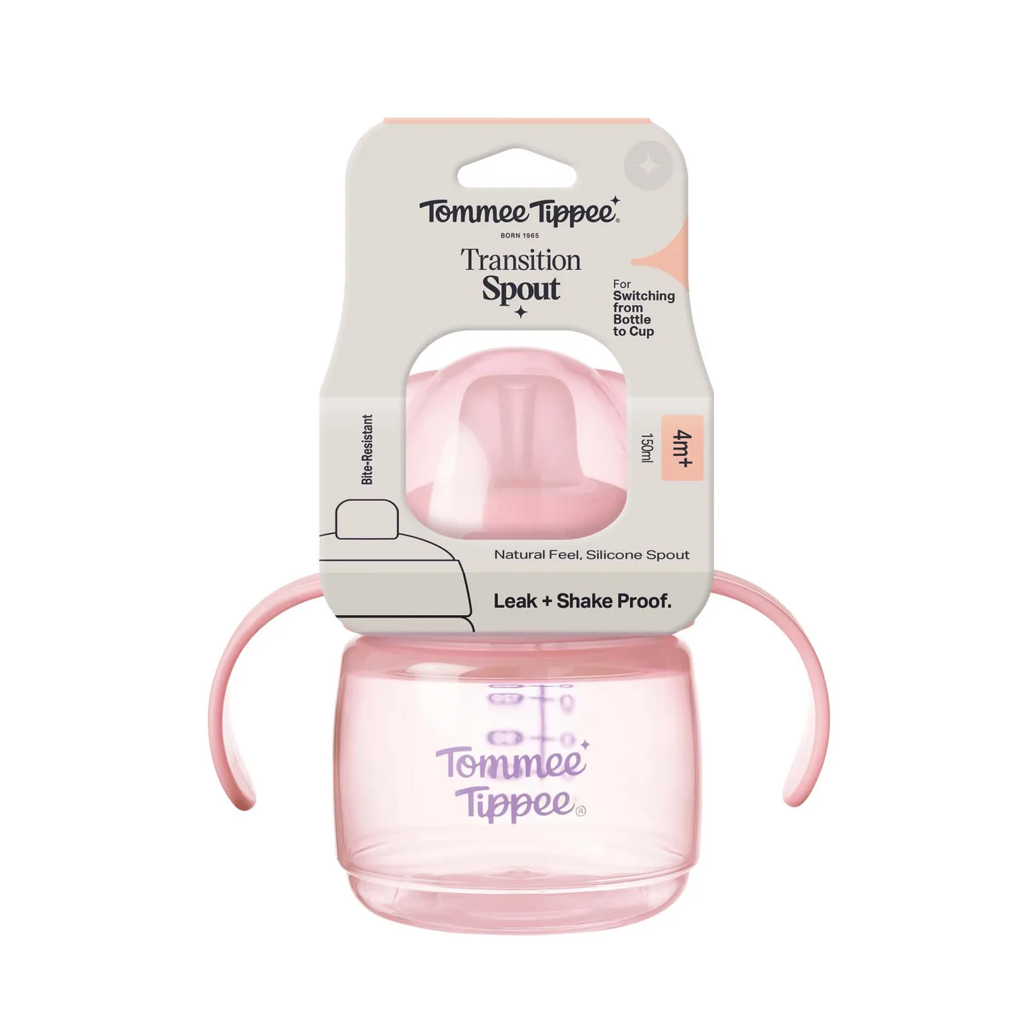 A soft spout sippy cup designed for babies from 4 months, helping them transition from bottle to cup with ease. Features a gentle, easy-sip spout and comfortable grip for little hands.