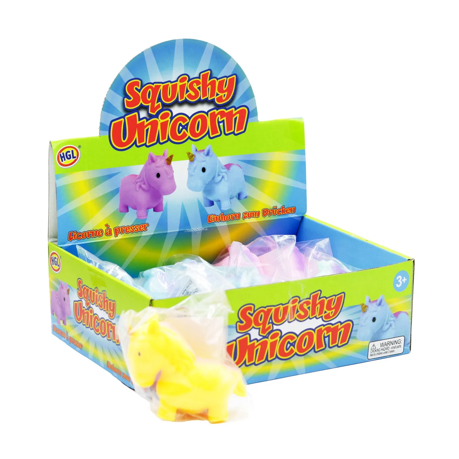 A display of soft unicorn squishy toys designed for fun, stress relief, and sensory play. Cute and squeezable, they slowly rise back to shape, making them perfect for kids and novelty gifting.