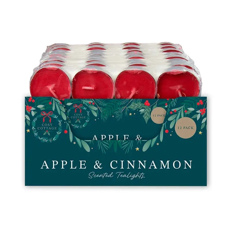Scented tealights with a warm apple and cinnamon fragrance, ideal for cozy atmospheres.