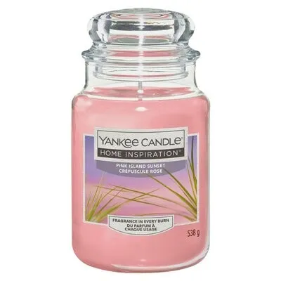 A large jar candle with a tropical, fruity floral fragrance that evokes the relaxing scent of a sunny island getaway.