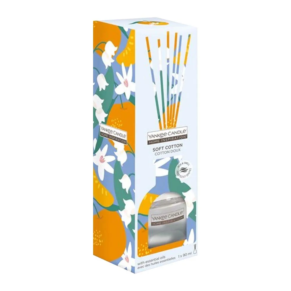 A beautifully fragranced reed diffuser featuring the clean, fresh scent of Soft Cotton. Designed to provide continuous, long-lasting fragrance, it adds a crisp and comforting atmosphere to any room.