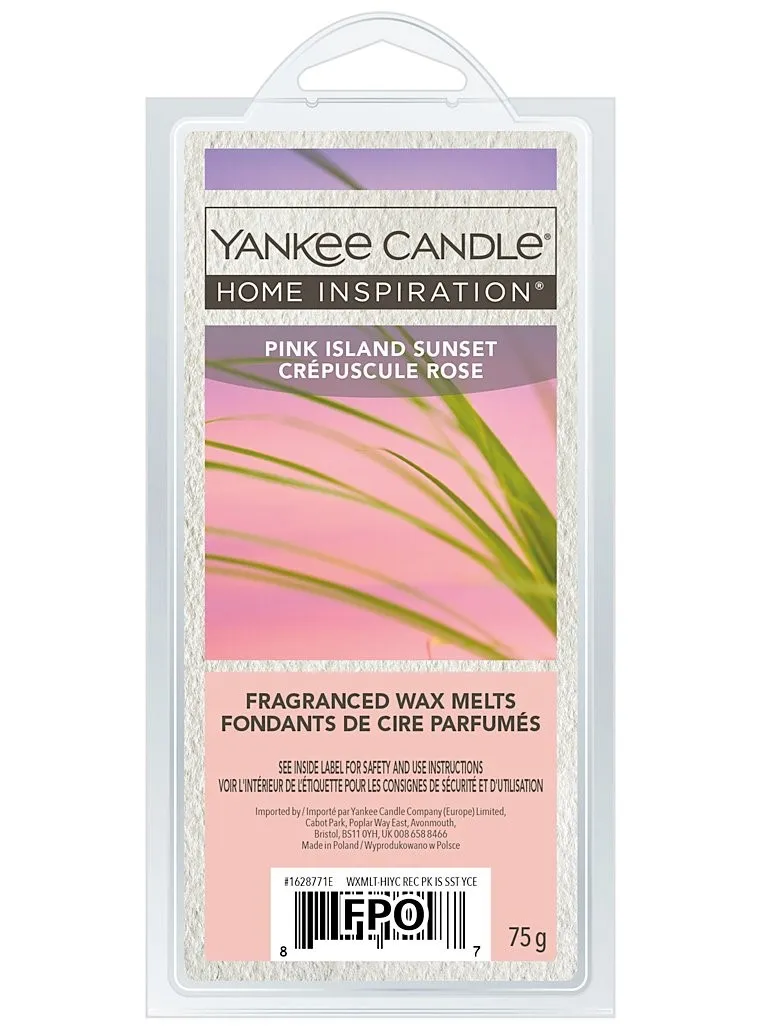 A scented wax melt with a tropical Pink Island Sunset fragrance, designed to fill your home with a warm, exotic aroma. Easy to use with a wax burner for a long-lasting, relaxing scent experience.