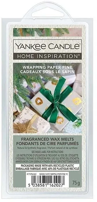 Yankee Candle Wax Melts 75g Wrapping Paper Pine release a fresh pine fragrance that fills your home with a clean, seasonal scent. Designed for use in wax melt burners, they provide long-lasting fragrance without the need for a wick.