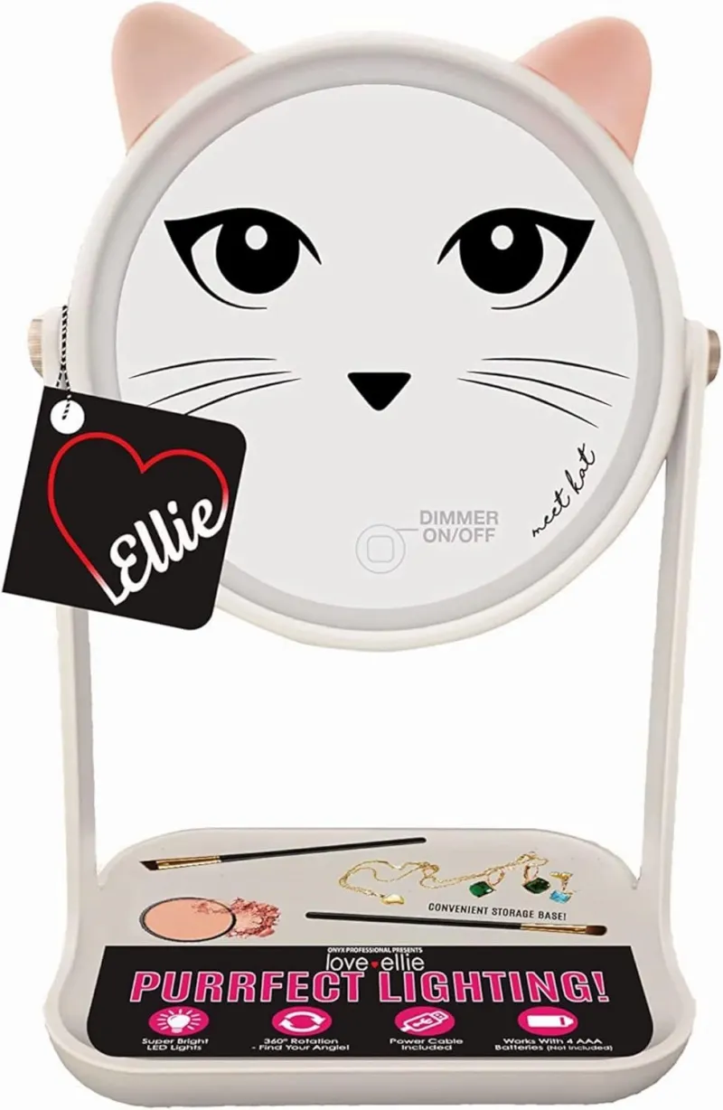 Stylish Love + Ellie Kat light-up mirror for enhanced makeup precision.