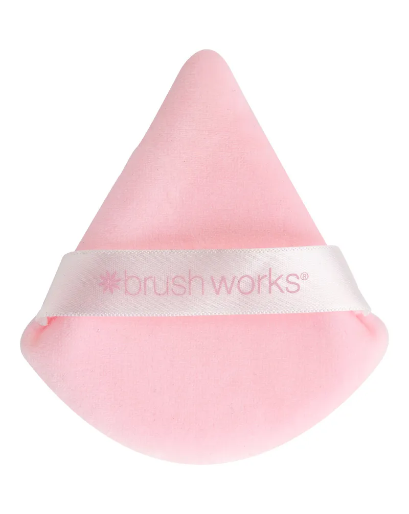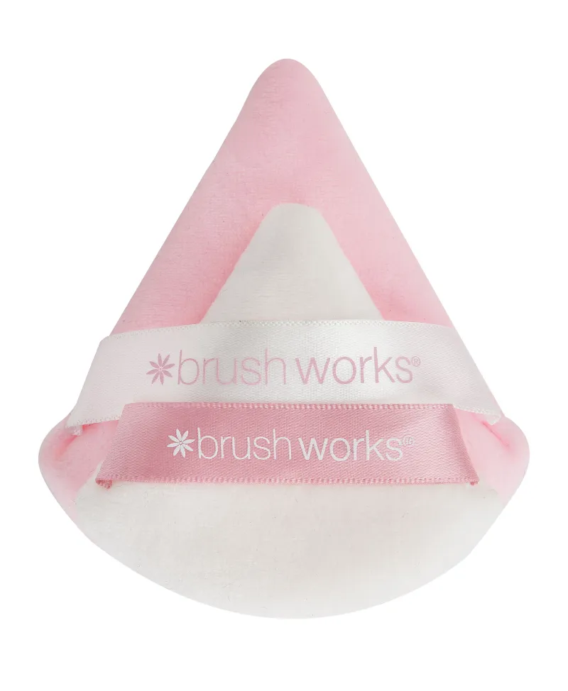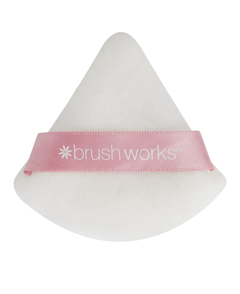 Triangular powder puff for precise application of loose or pressed powders.