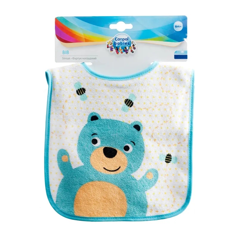 Set of bibs with button fastening to keep feeding tidy.