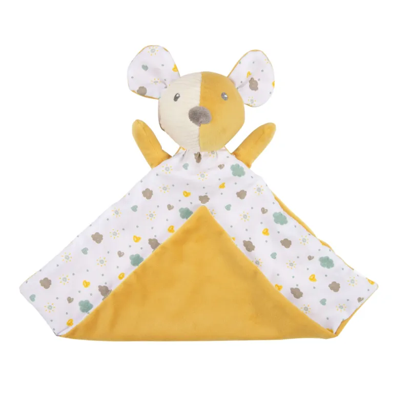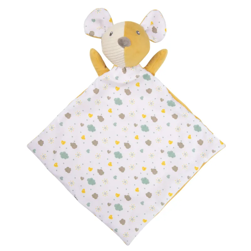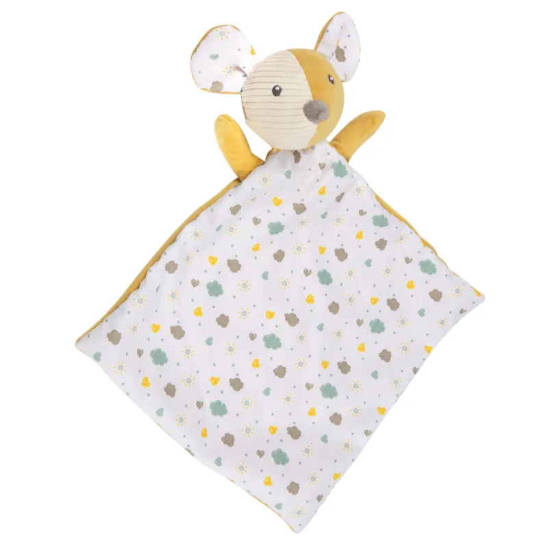 Multi-purpose rattle, teether, and comforter toy in one.