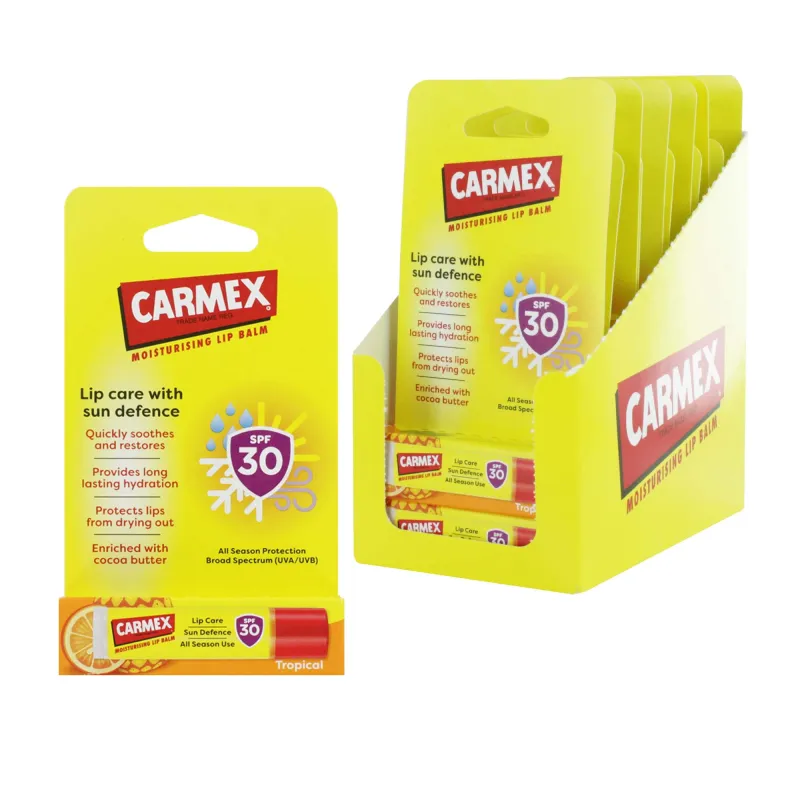 SPF 30 lip balm sticks providing sun protection while keeping lips moisturised and smooth. Pack of 12.