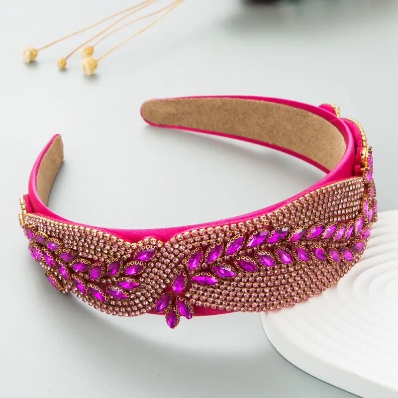 Elegant wide headband adorned with crystal diamante leaf details for a sparkling finish.
