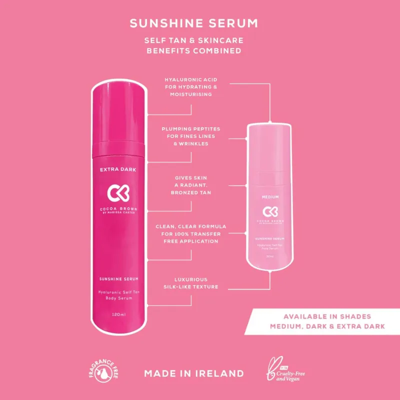 Cocoa Brown Serum Face Dark is a lightweight tanning serum designed to give the face a natural, deep glow. It blends easily for a smooth, streak-free finish and radiant complexion.