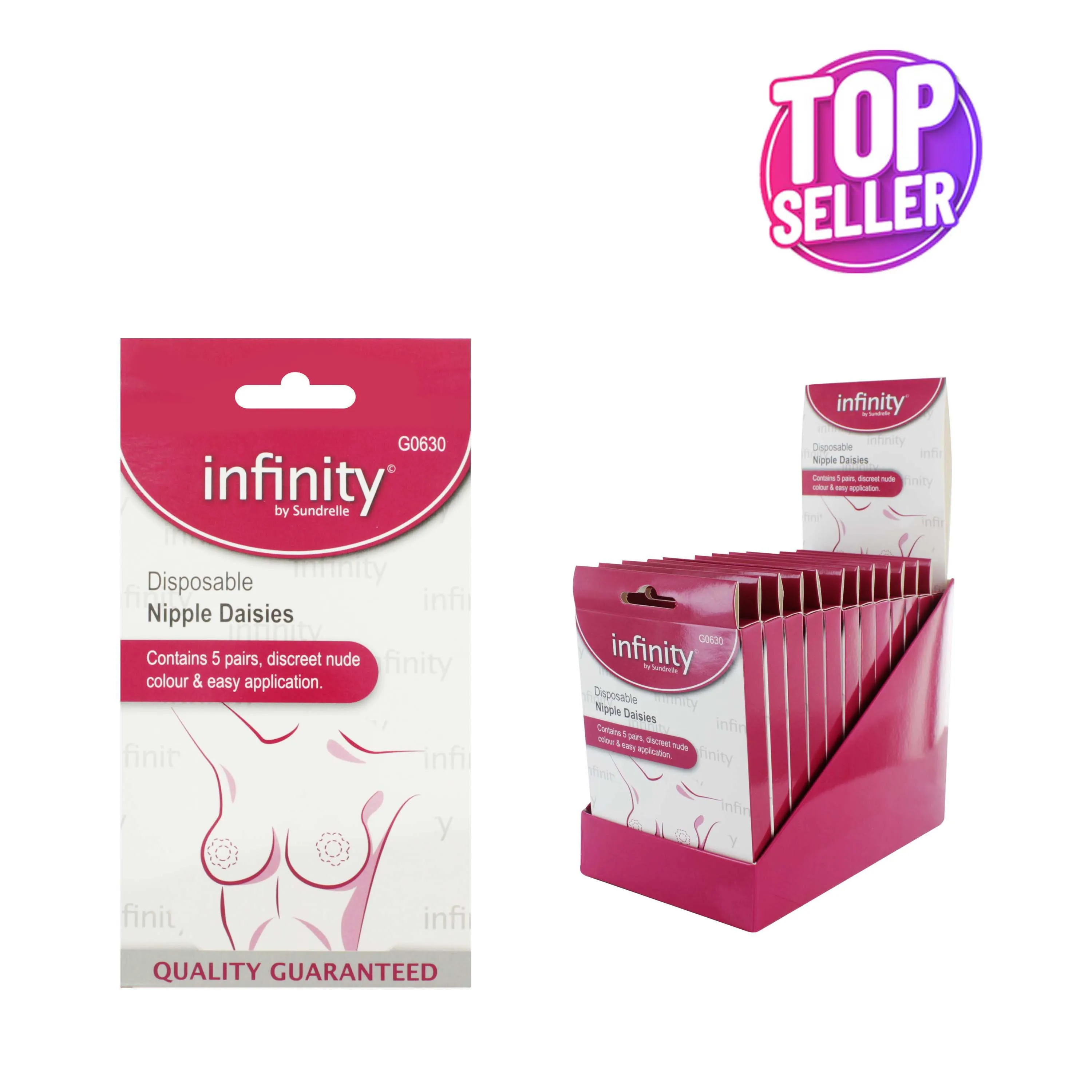 Discreet self-adhesive nipple covers for a smooth look under clothing.