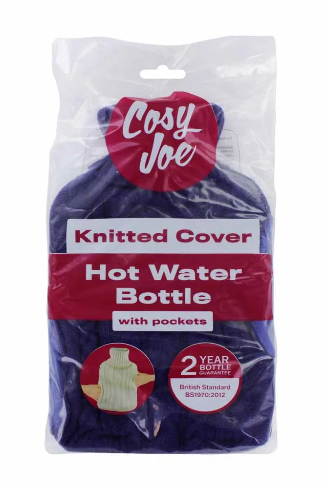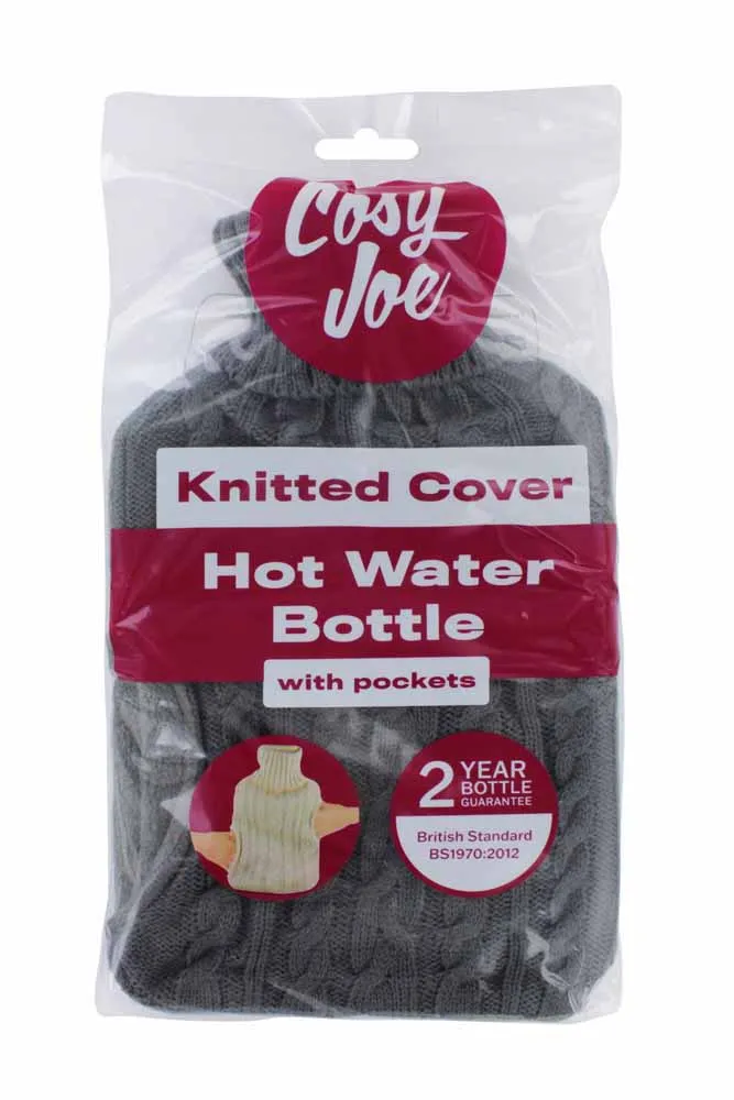 Cosy Joe Knitted Hot Water Bottle with Pockets features a soft, knitted cover and convenient hand pockets for extra warmth and comfort. Perfect for soothing aches, keeping cozy during cold nights, or relaxation, it’s an ideal gift or home essential.