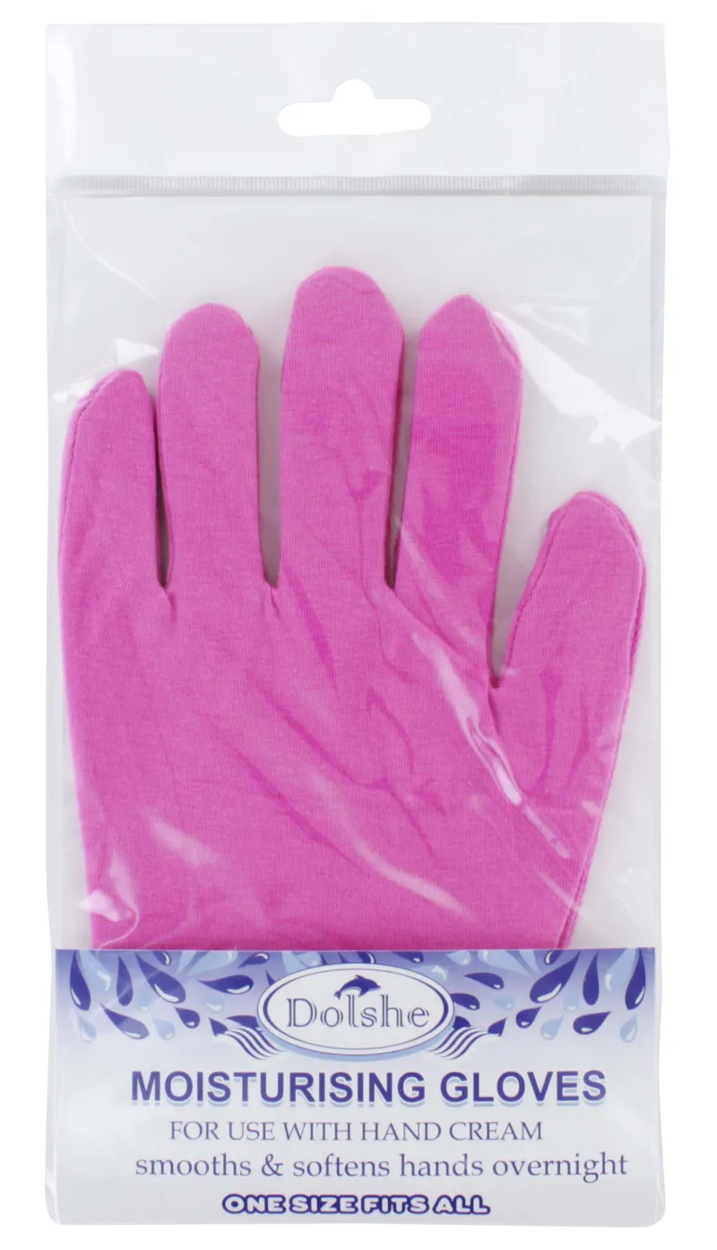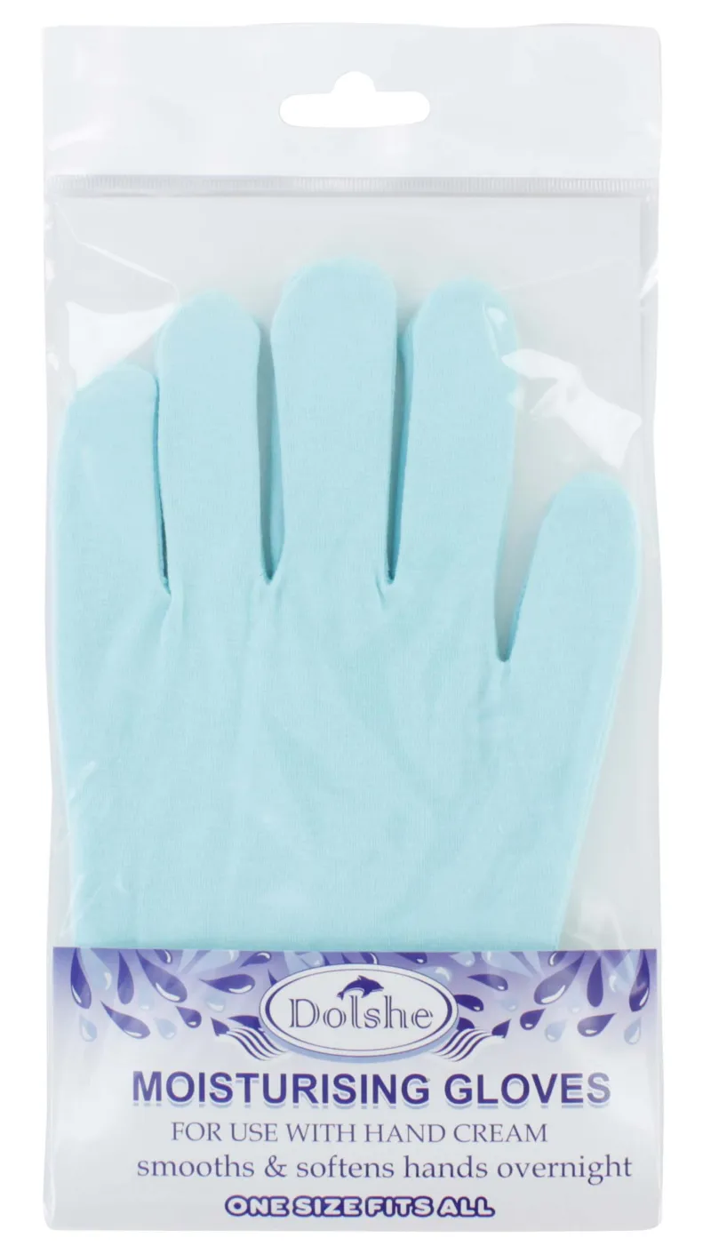 Moisturising gloves designed to deeply hydrate and soften dry hands, leaving skin smooth and nourished.