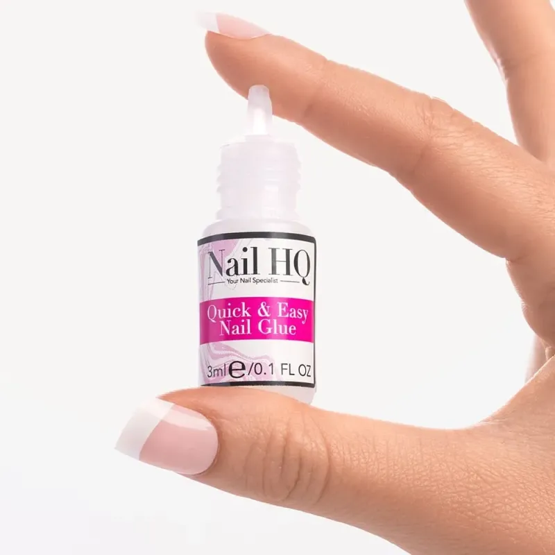 A fast drying nail glue for quick and secure application of artificial nails.