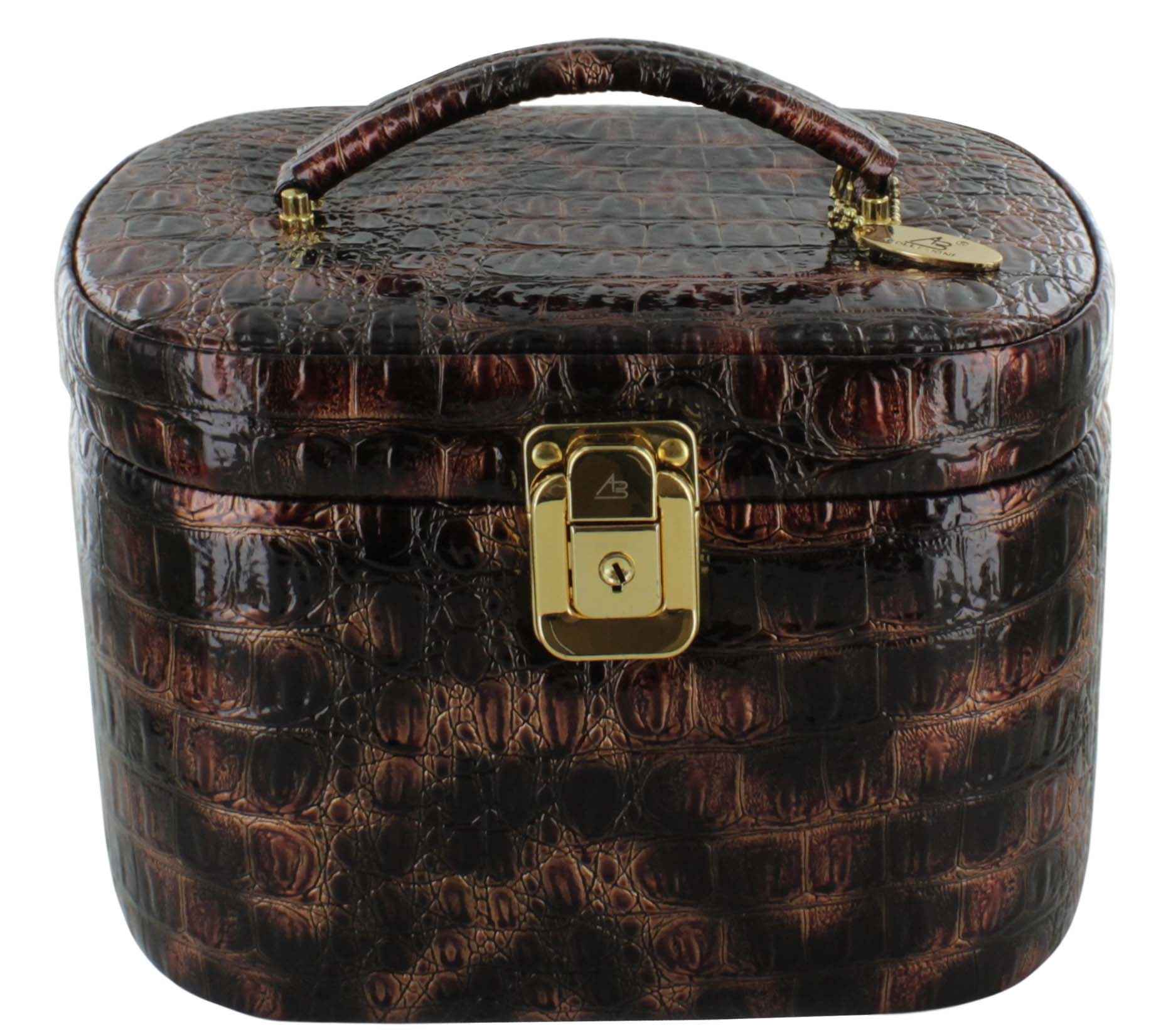 Stylish medium-sized vanity case with Africa-inspired design for cosmetics storage.
