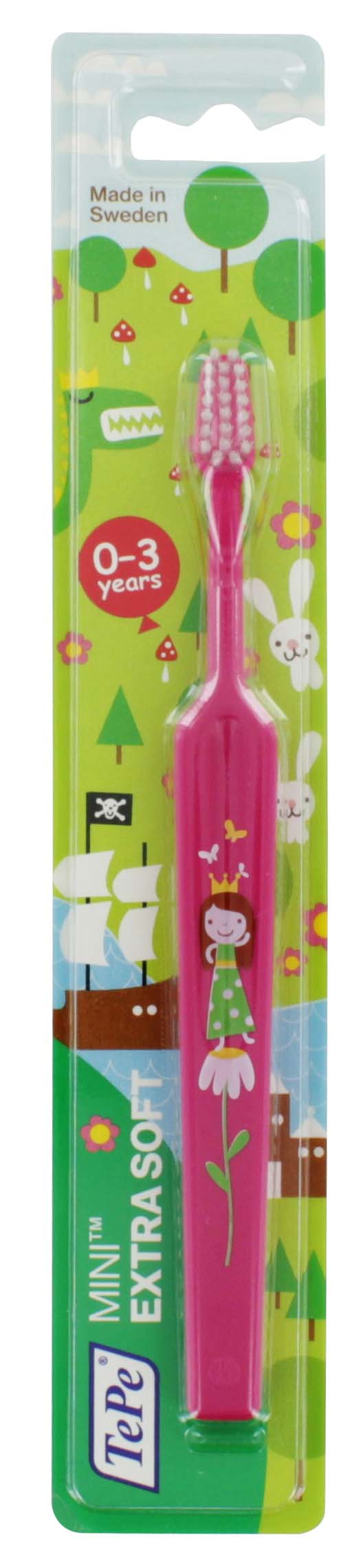 Extra soft toothbrush designed for gentle cleaning of toddlers' first teeth.