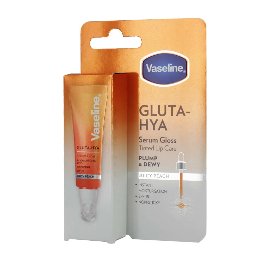 A nourishing lip serum gloss infused with Gluta-Hya to help hydrate, smooth, and enhance lips with a juicy peach tint. Provides a glossy finish while caring for lips, leaving them soft, plump, and healthy-looking.